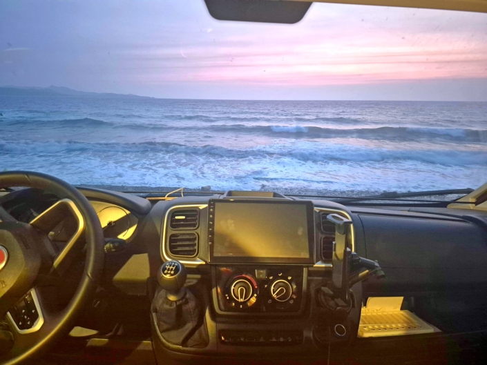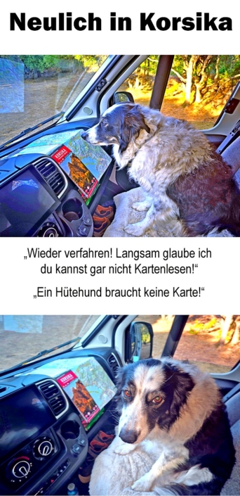 Anreise über Italien, mit der Fähre von Livorno (I) nach Bastia (F). Durch Cap Corse, über die Nordküste bis Calvi, weiter bis Porto, über die Berge im Landesinneren nach Corte, weiter nach Aleria an der Westküste, zurück nach Bastia